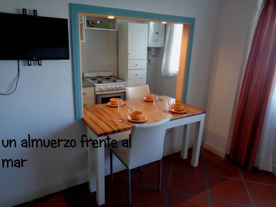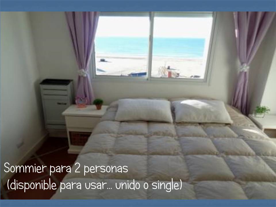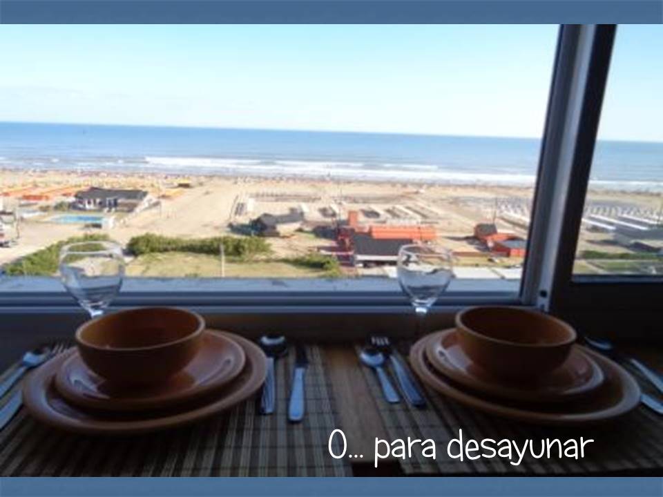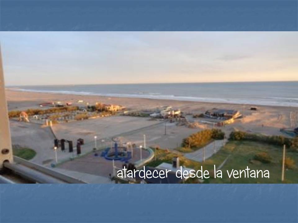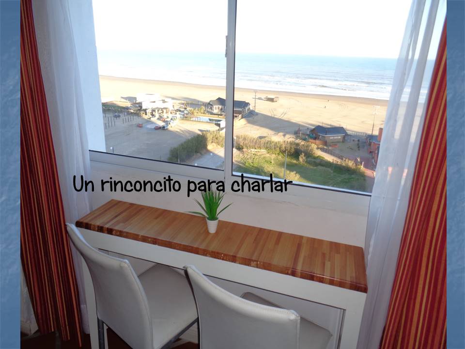 Edificio:“Ciudad Maritima” Dirección:Av2 nro3940 (e 79 y 81) Piso:9  «A» Distancia a la playa: cruzando la calle Características generales:2 ambientes (40 m²) frente al mar con vista panorámica desde todos los ambientes. Nuevo. A 1 cuadra de la peatonal Camas:hasta 4 (cuatro) personas Sommierde 26 cm x 80 cm x 190 cm. Se puede usar como 2 (dos) camas separadas o como 1 (una) cama de 2 plazas de 1,60 m de ancho Cama para 2 personas en el living Desayunador:  Si. Con vista al mar .